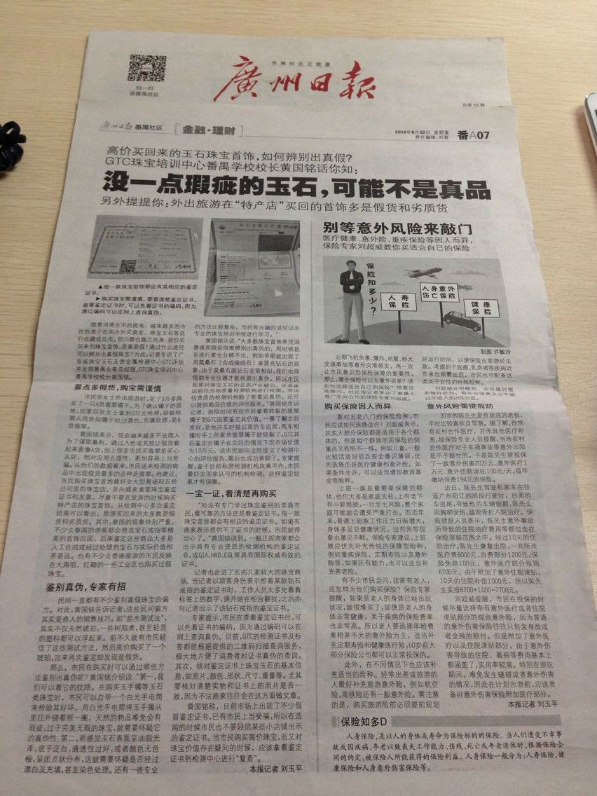 随着消费水平的提高,越来越多的市民热衷于国内外买黄金、珠宝玉石等进行收藏或自用。但问题也随之而来:高价买回来的珠宝首饰,是真是假?为此,广州日报记者专访了广州金一轩珠宝首饰有限公司执行董事、广东省珠宝玉石及贵金属检测中心 GTC 珠宝培训中心番
