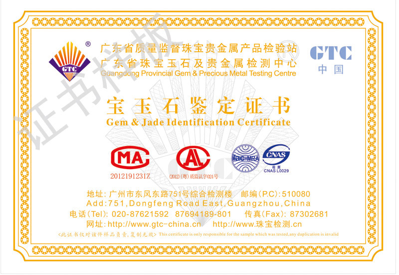 “对没有专门学过珠宝鉴别的普通市民,最可靠地方法就是看鉴定证书。每一款珠宝首饰都会有相应的鉴定证书。如果有商家表示提供不了证书的时候,市民就得当心了。”黄国铭说到。一般正规商家都会出示具有专业、权威资质的检测机构的鉴定证书,如广东省珠宝玉石及贵金属检测中心。