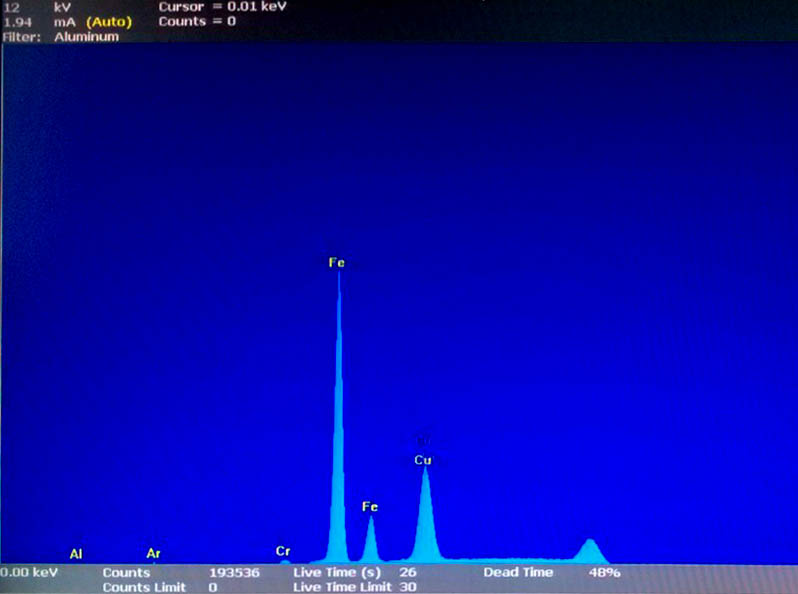 图4 XRF能谱测试,其中的Cu峰可能来源于金属托