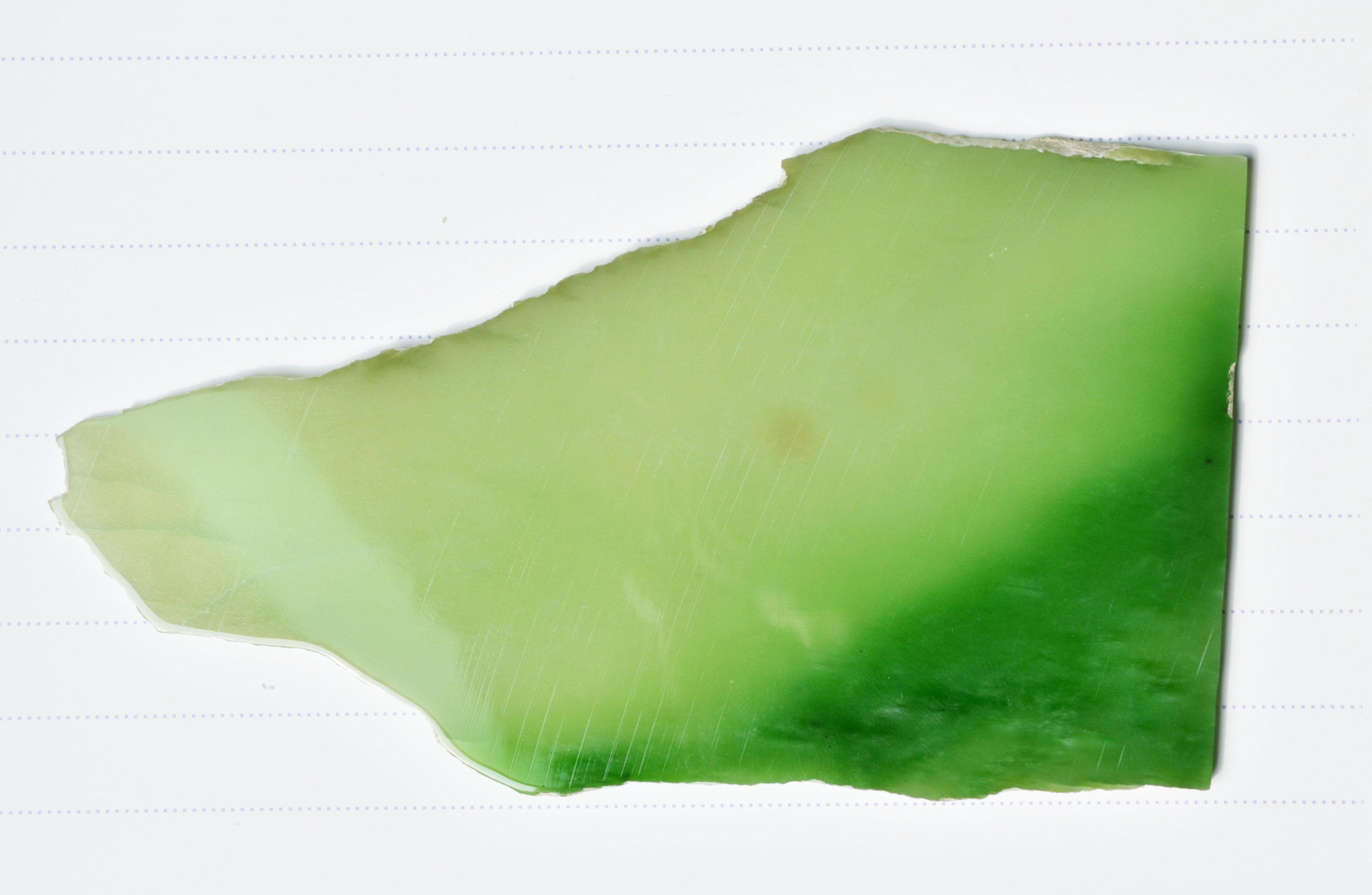 二、以“黑点”来分:青玉中没有“黑点”;碧玉(料)中都有“黑点”。“黑点”被普遍认为是铬铁矿物。因此,含致色元素Cr也被认为是二者的主要区别。
