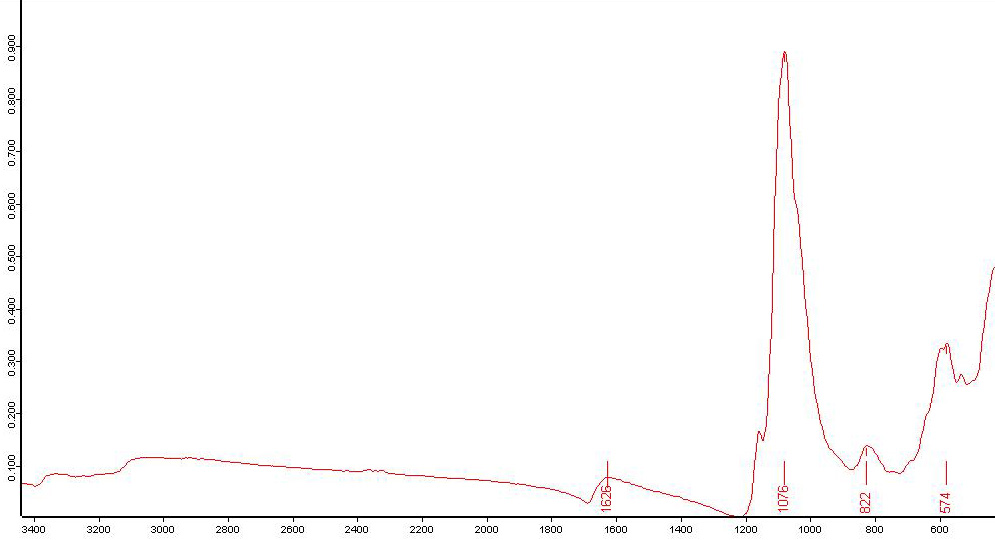 对样品的不同部位进行测试,获得反射谱图,经与参考谱图对比,发现样品在1700~500cm-1范围内的特征吸收峰与磷铝石的参考谱图基本吻合。