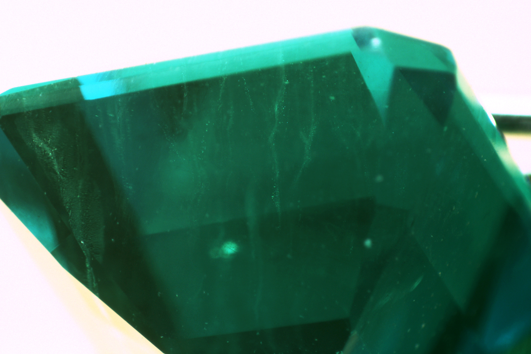 合成祖母绿主要有两种方法,即助熔剂法和水热法。其折射率、密度等物理特征与天然祖母绿很接近。鉴定的主要依据是内部特征及红外光谱特征。